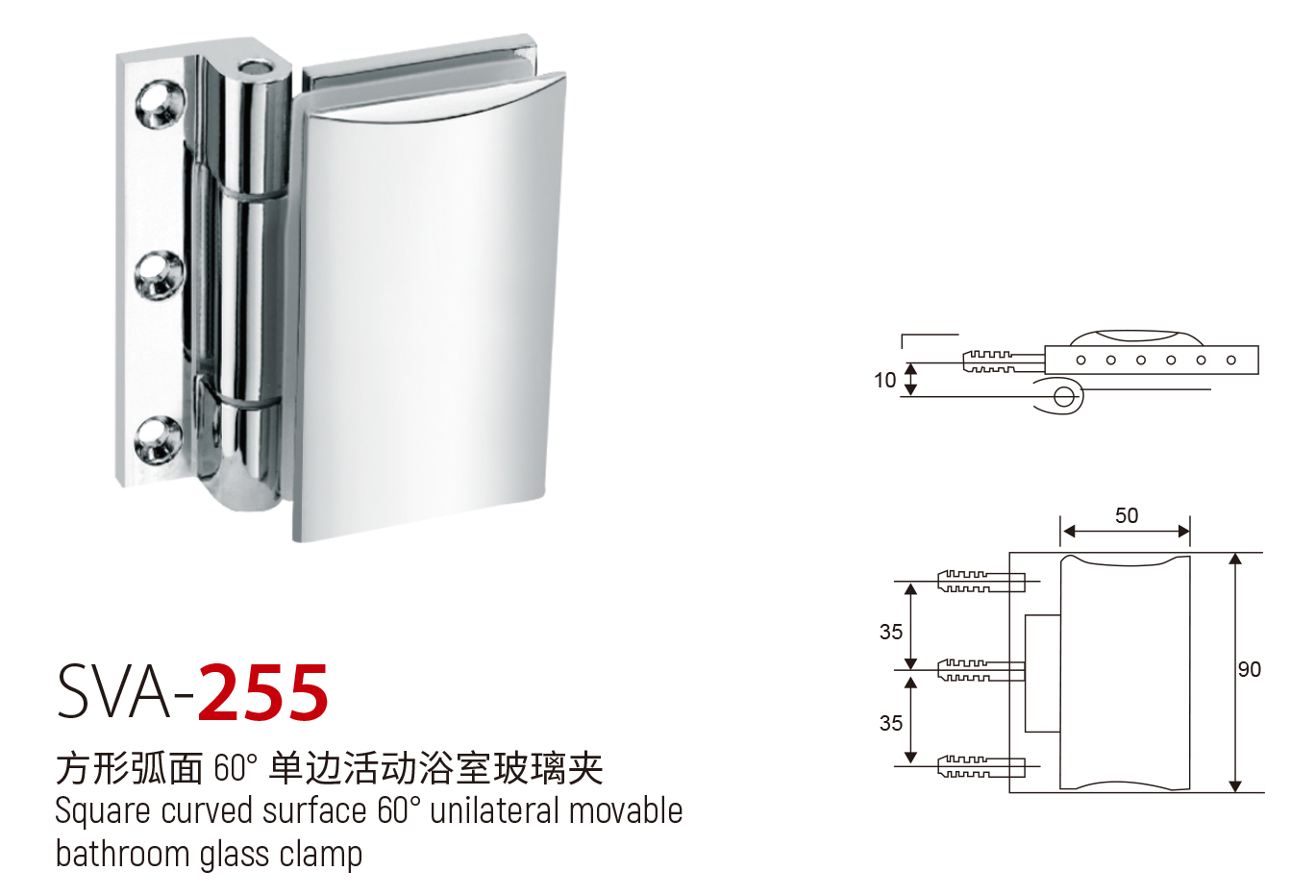 SVA - 255 方形弧面 60° 单边活动浴室玻璃夹