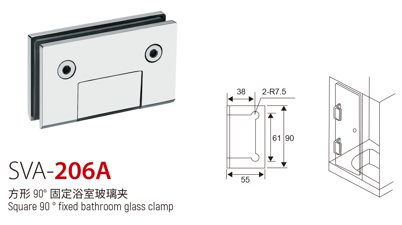SVA - 206A 方形 90° 固定浴室玻璃夹