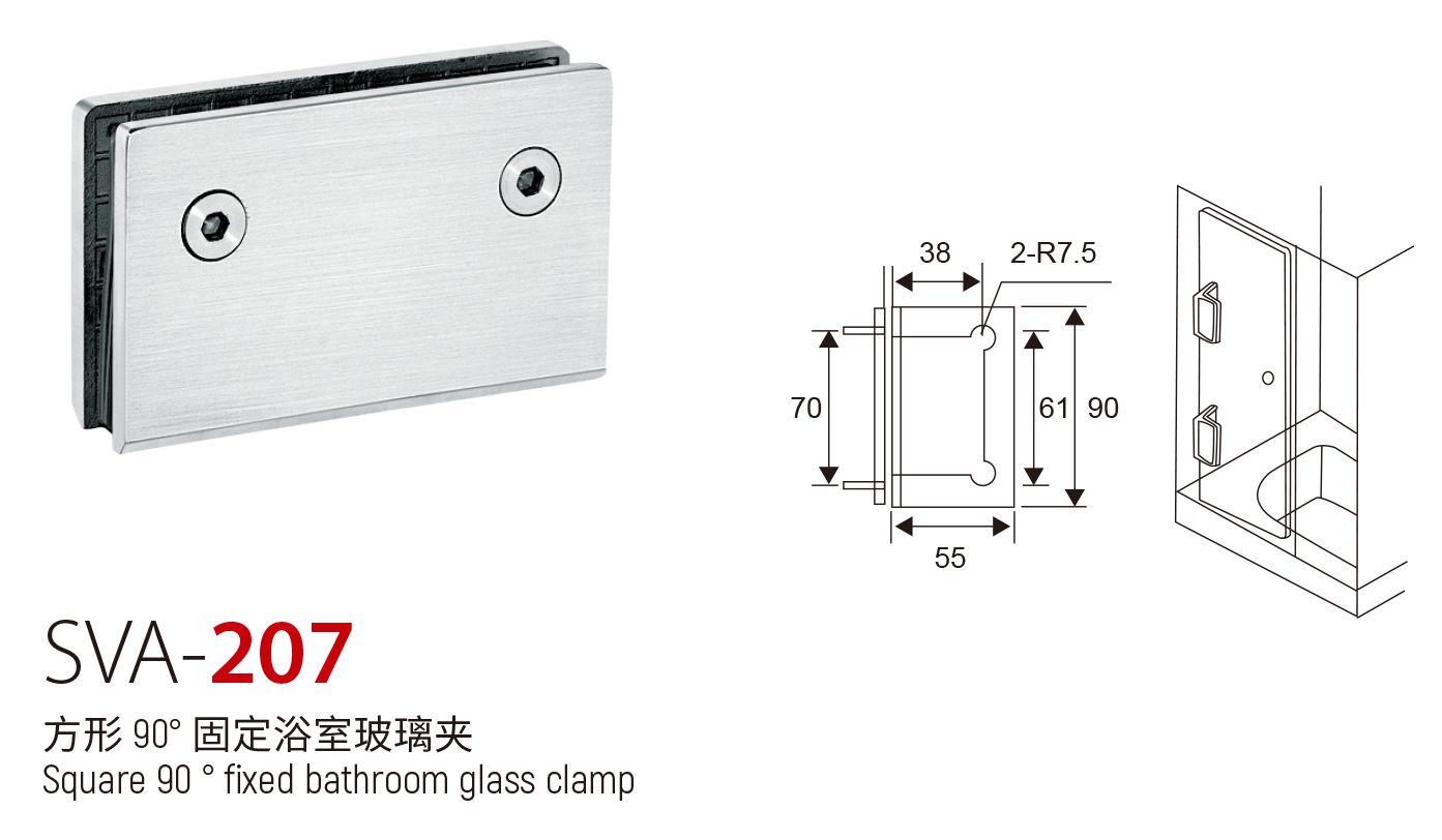 SVA - 207 方形 90° 固定浴室玻璃夹