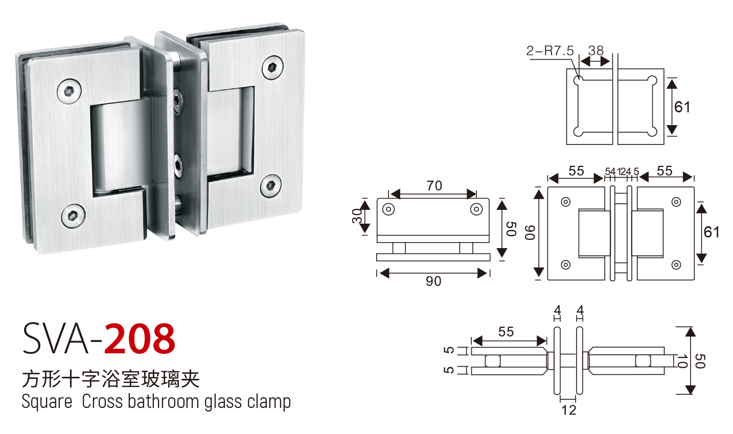 SVA - 208 方形十字浴室玻璃夹