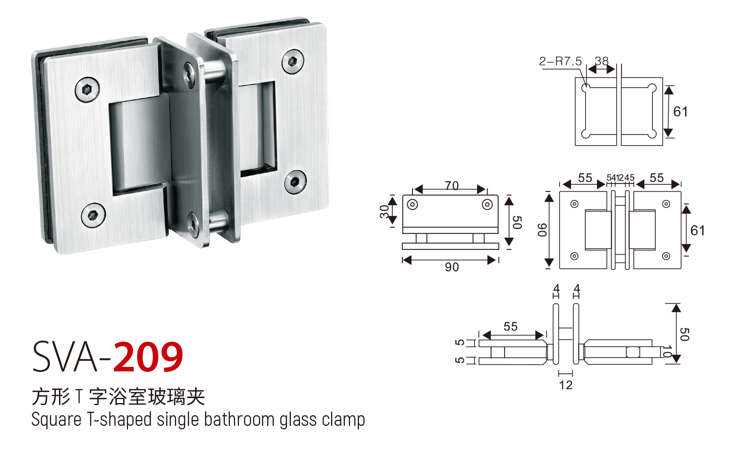 SVA - 209 方形 T 字浴室玻璃夹