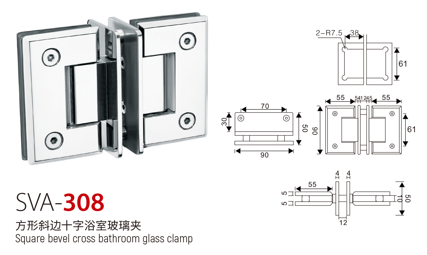 SVA - 308 方形斜边十字浴室玻璃夹