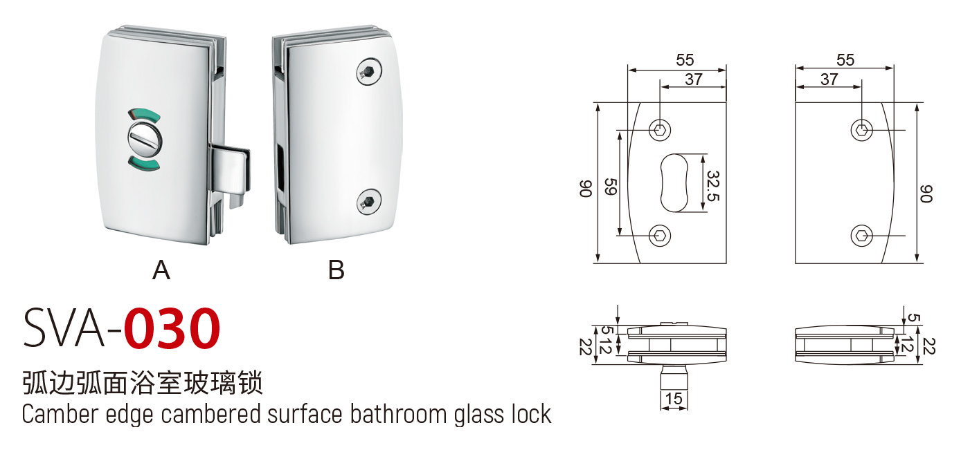 SVA - 030 弧边弧面浴室玻璃锁