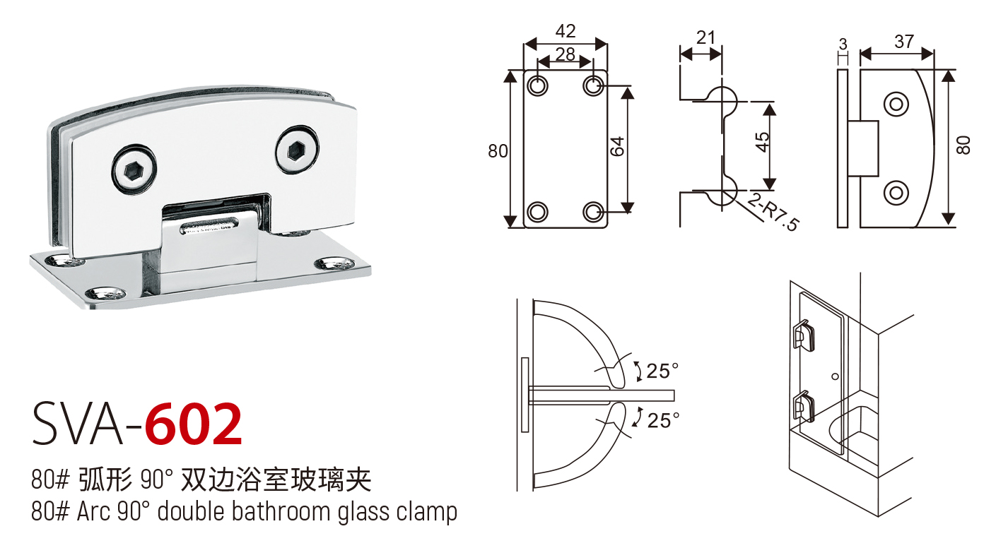 SVA - 602 80# 弧形 90° 双边浴室玻璃夹