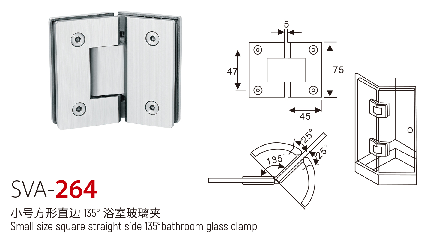 SVA - 264 小号方形直边 135° 浴室玻璃夹