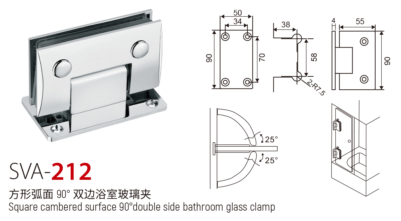SVA - 212 方形弧面 90° 双边浴室玻璃夹