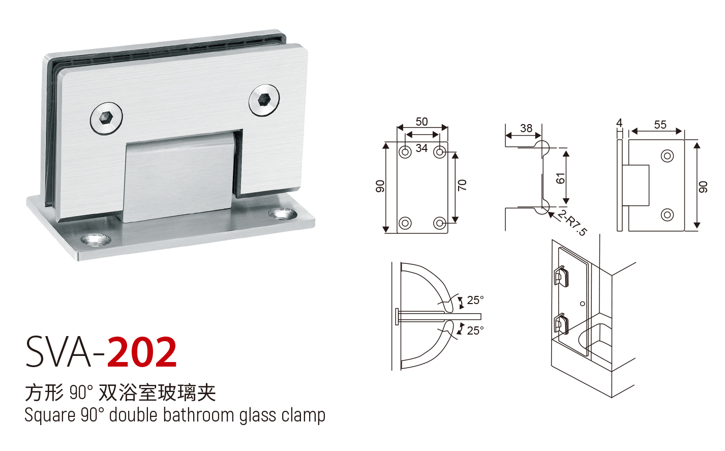 SVA - 202 方形 90° 双浴室玻璃夹