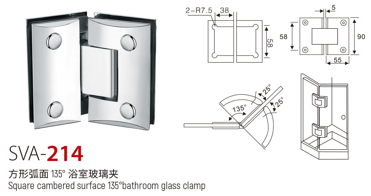 SVA - 214 方形弧面 135° 浴室玻璃夹
