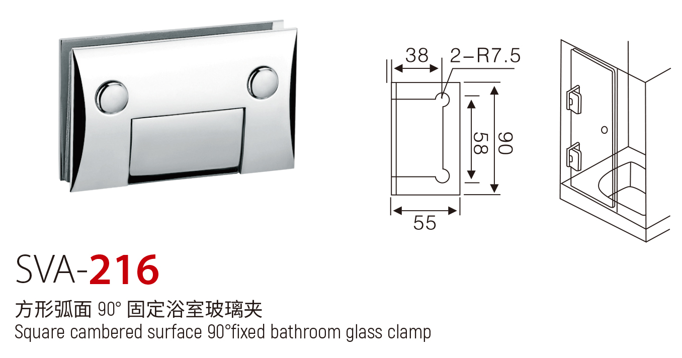 SVA - 216 方形弧面 90° 固定浴室玻璃夹