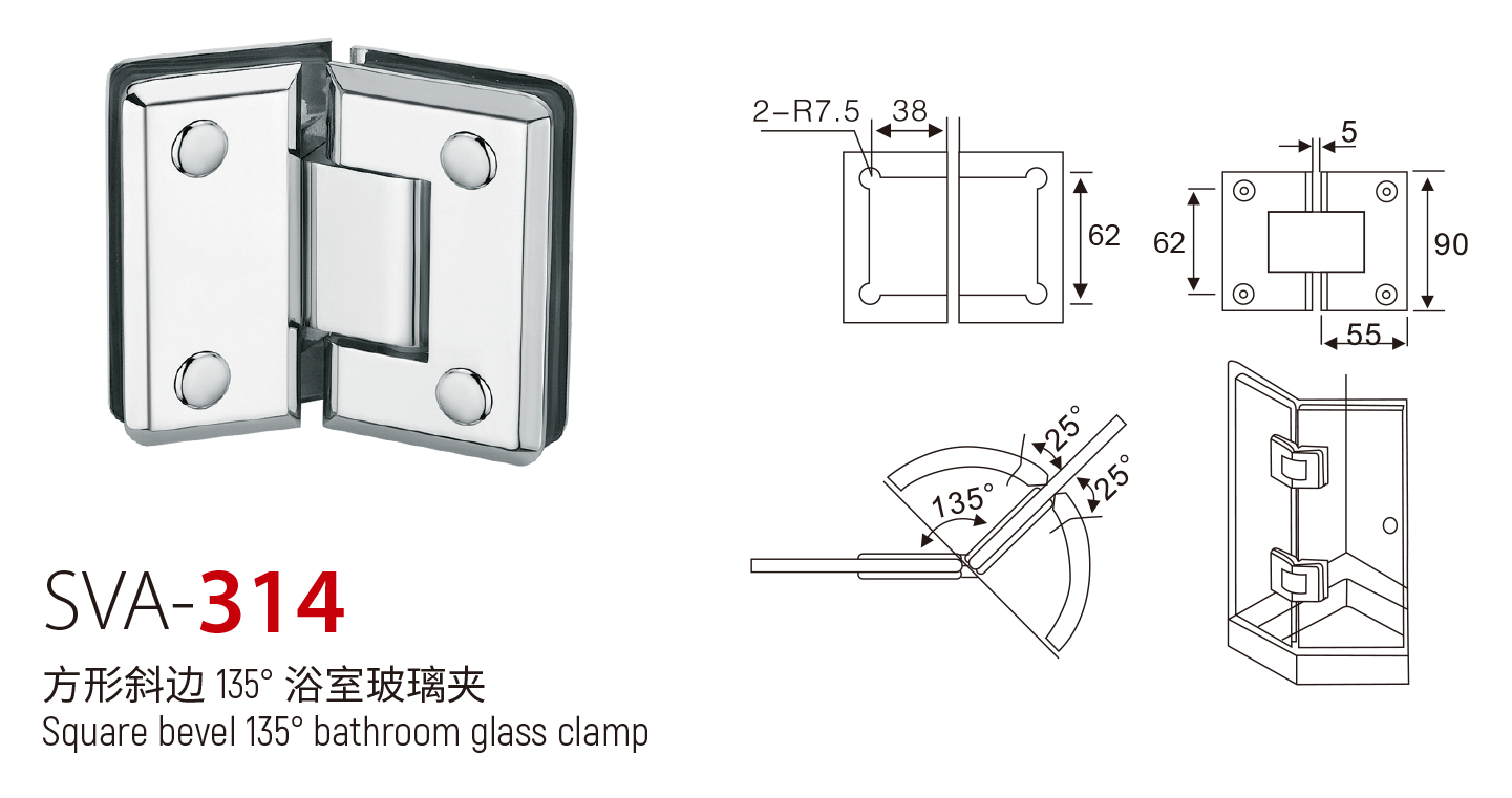 SVA - 314 方形斜边 135° 浴室玻璃夹