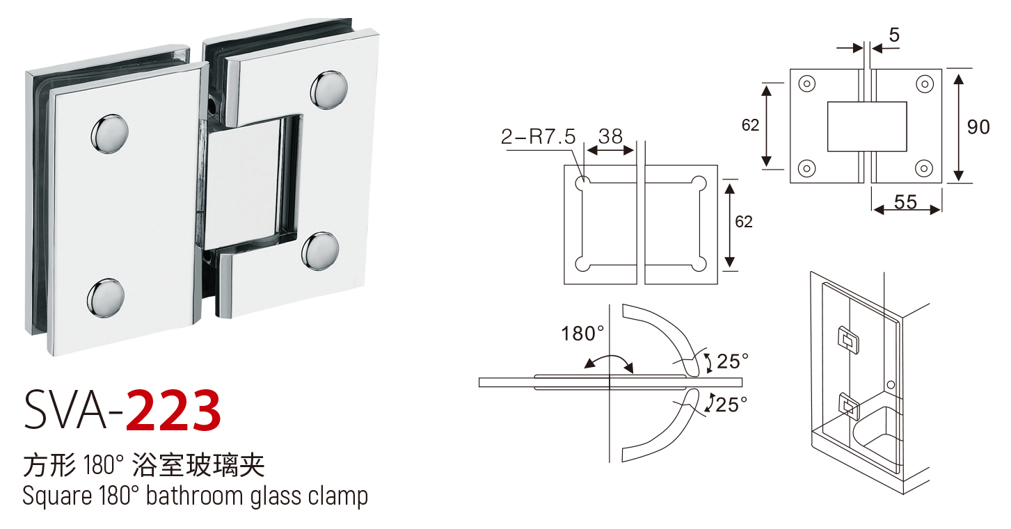 SVA - 223 方形 180° 浴室玻璃夹