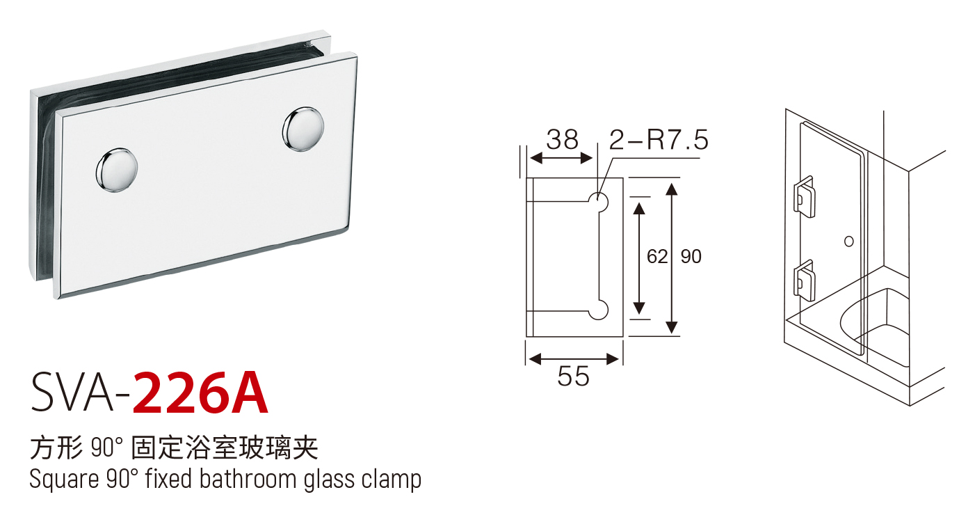 SVA - 226A 方形 90° 固定浴室玻璃夹