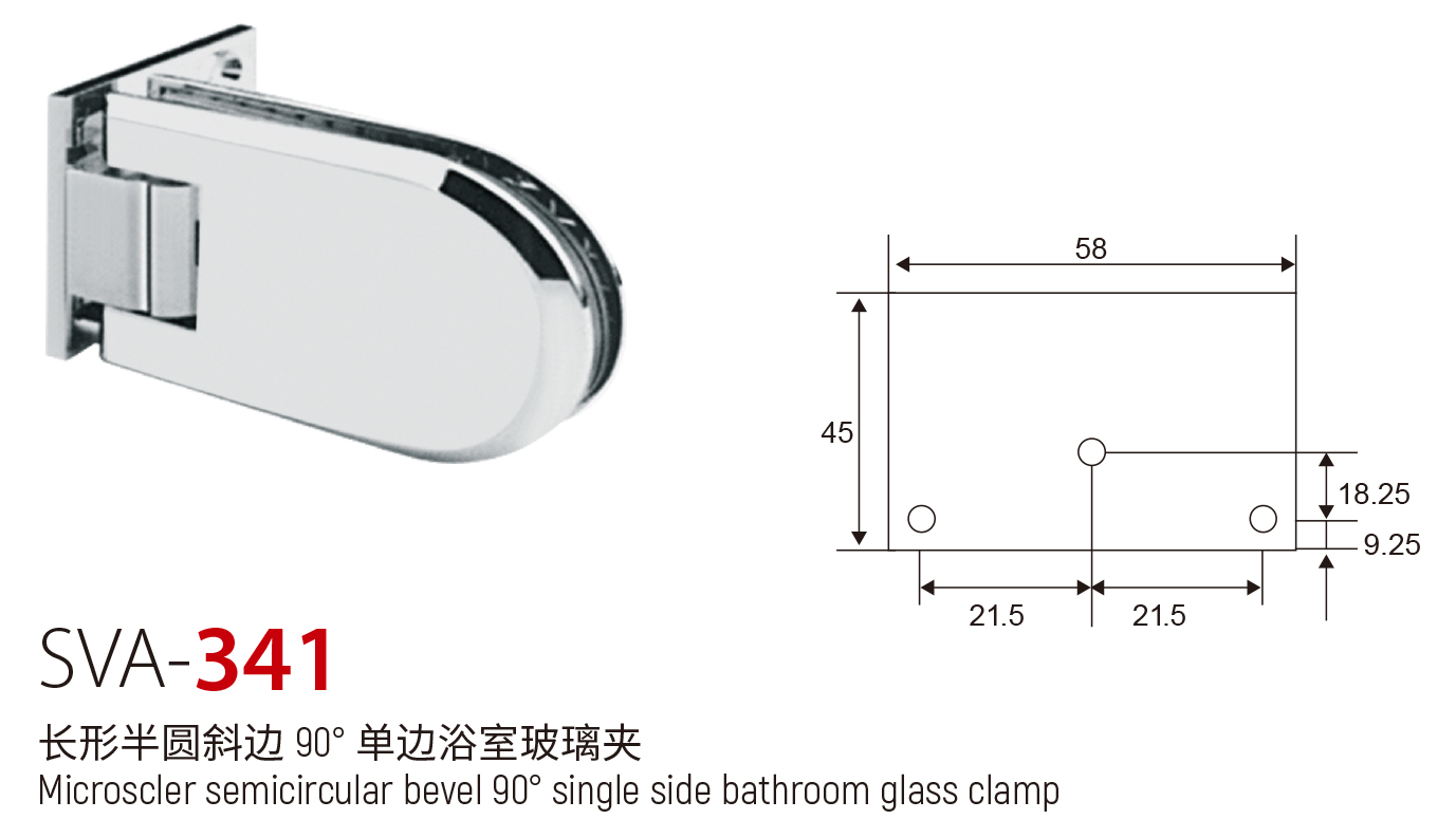 SVA - 341 长形半圆斜边 90° 单边浴室玻璃夹