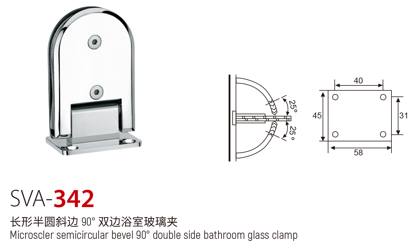 SVA - 342 长形半圆斜边 90° 双边浴室玻璃夹