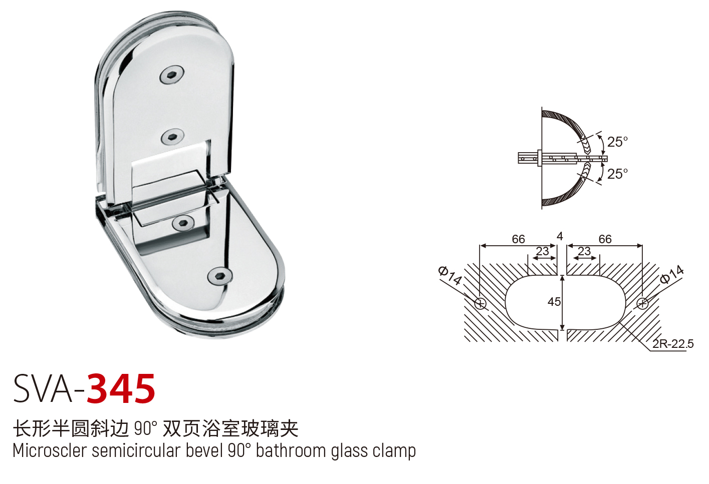 SVA - 345 长形半圆斜边 90° 双页浴室玻璃夹