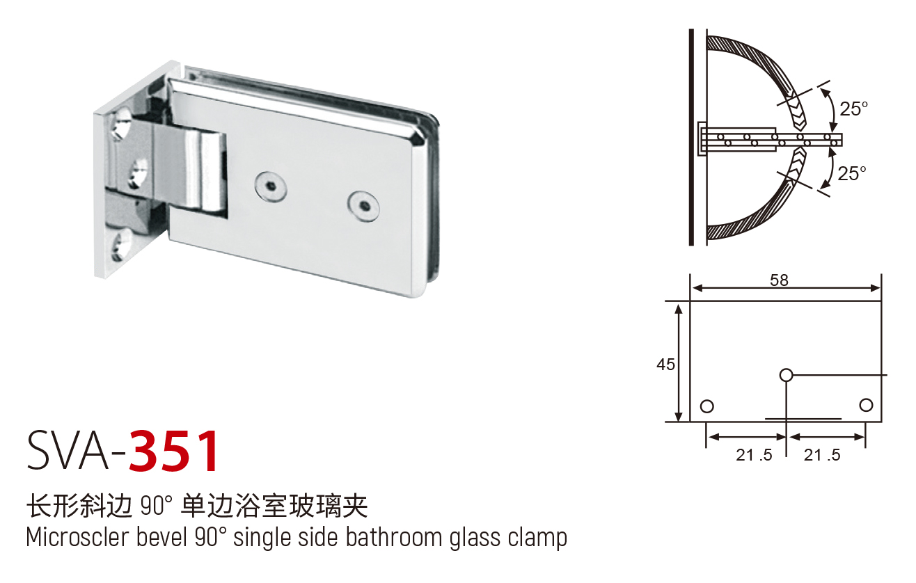SVA - 351 长形斜边 90° 单边浴室玻璃夹